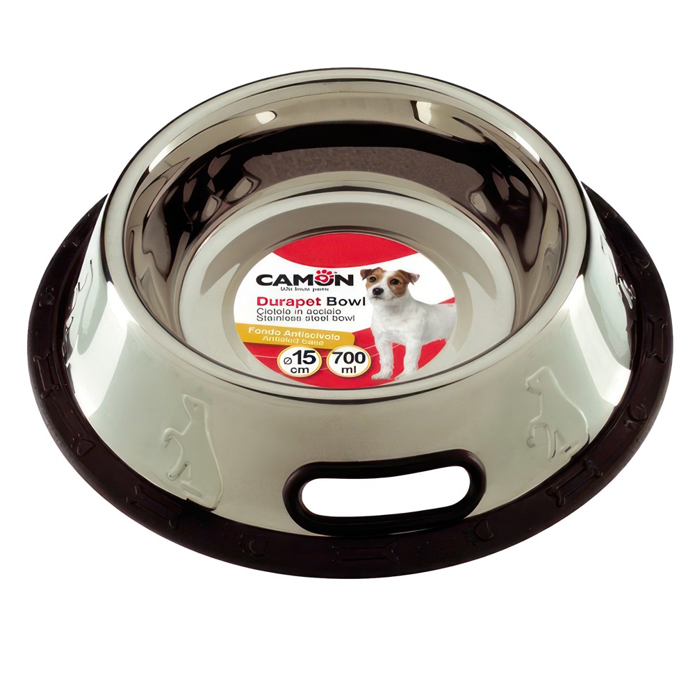 Po vlerësoni:Tas ushqimi dhe uji, Camon, d20 cm, 1500 ml, metalik, me bazament gome