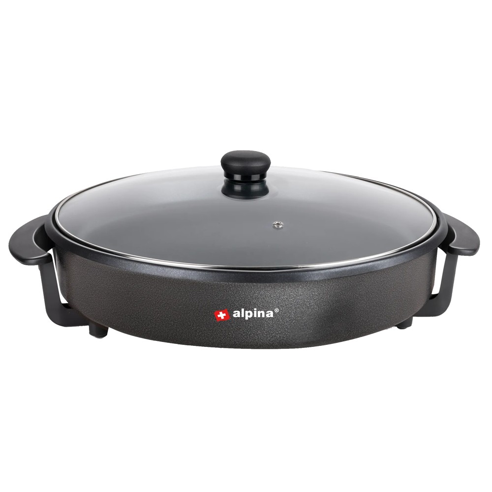 Ju mund të përgatisni paella, makarona, pulë, pjata me mish, kuskus dhe receta të tjera në këtë tavë elektrike nga Alpina. Tava është super multifunksionale; mund të piqni edhe pica në të. Ka një shtresë që nuk ngjit. Pra, asnjë pjatë nuk mund të dështojë dhe tava pastrohet lehtë sepse asgjë nuk ngjitet në të. Për më tepër, për shkak të kësaj shtrese të veçantë ju duhet të përdorni vetëm pak vaj ose gjalpë. Tava elektrike është e pajisur me një kontrollues të temperaturës. Përdorni çelësin në kontrollues për të zgjedhur temperaturën e duhur për pjatën që dëshironi të përgatisni. Tava duhet të nxehet për 5-10 minuta përpara se të filloni gatimin ose pjekjen. Drita treguese tregon nëse tava është gati për përdorim. Ju përdorni kapakun me një vrimë me avull nëse përgatitni qofte, pica, biftekë, mish, hamburger, vezë, kek dhe ushqime të tjera të skuqura. Me këteë tavë ju gjithashtu mund të ngrohni lehtësisht një vakt ose të piqni një tortilla në të. Ju gjithashtu mund t'i mbani ushqimet të ngrohta në këtë tigan gjatë një feste ose ndonjë rasti tjetër. Tava ka një fuqi prej 1500 Watt.