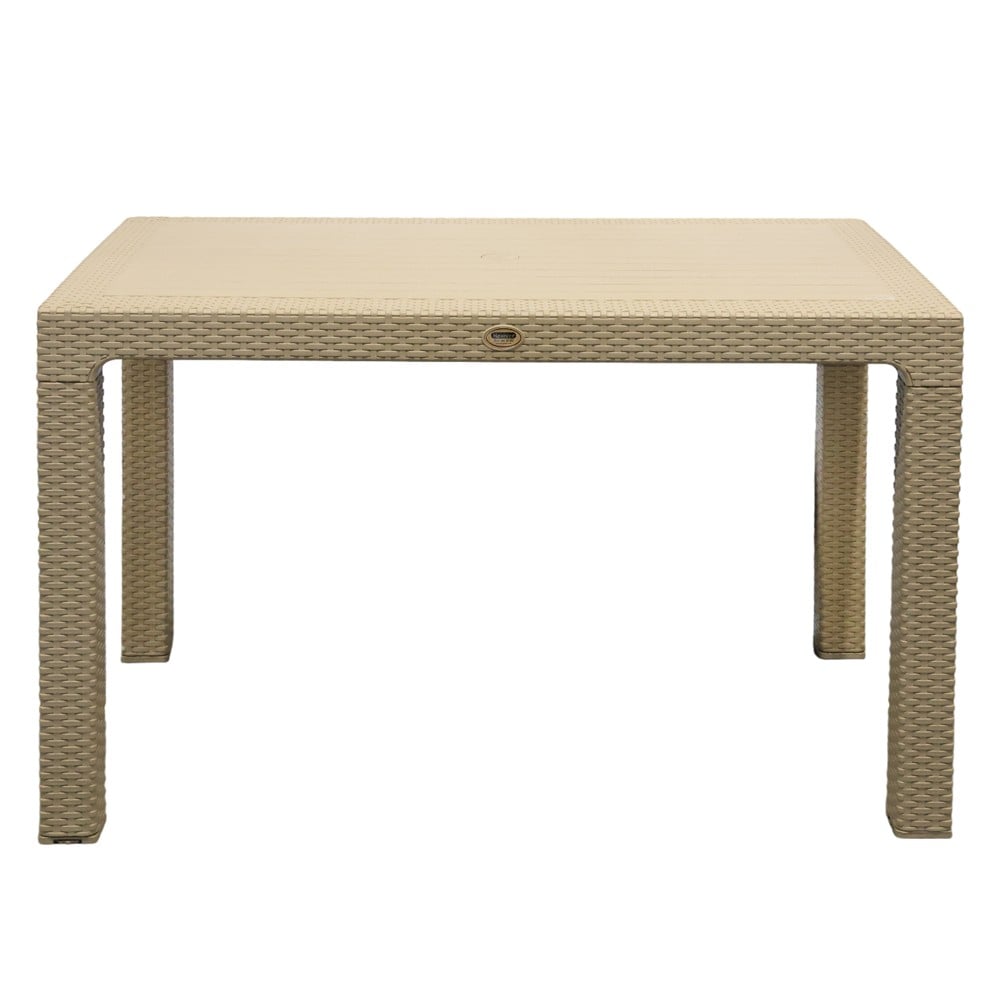 Tavolina drejtëkëndore është një zgjedhje e shkëlqyer për të shtuar stil dhe funksionalitet në ambientin tuaj. E dizajnuar me kujdes dhe e ndërtuar me materiale plastike cilësore, kjo tavolinë vjen në një ngjyrë të bukur kapuçino, e cila i jep një prekje të sofistikuar çdo ambienti. Hapsirë e përshtatshme për të akomoduar deri në 6 persona.