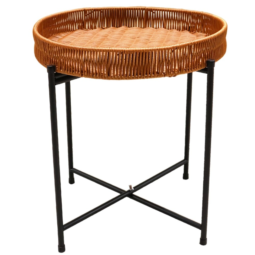 Tavolinë mesi, metalike/kashtë, e zezë/natyrale, 40x42 cm