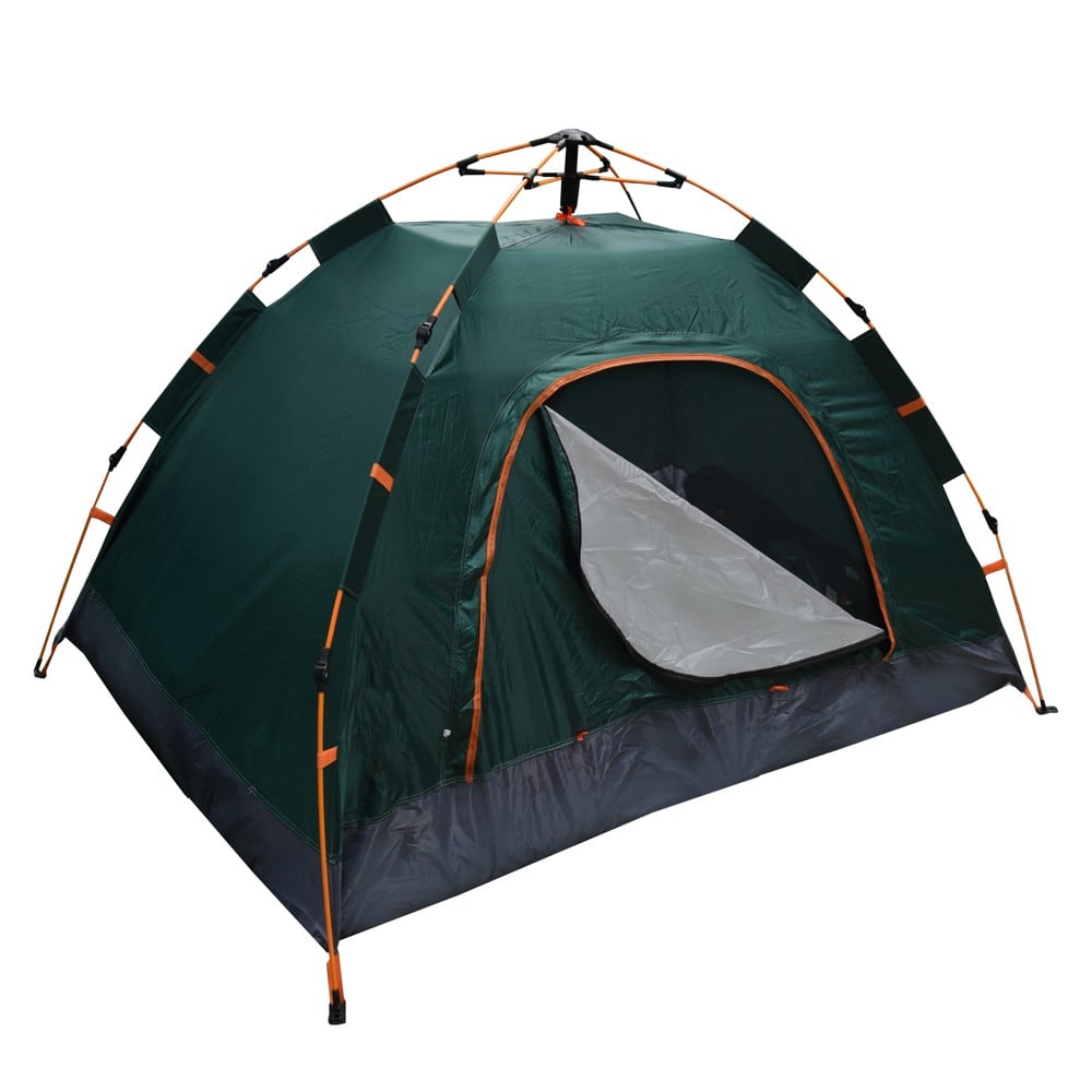 Tendë kampingu automatike, me permase 200x150 cm, me dizenjo jeshile e erret, e lehtë për të ngritur apo për t'u ulur poshtë. Pjesa ne te cilin futesh na cader hapet dhe mbyllet me zinxhir dhe mbrohet nga nje pjese rrjete e cila mundeson edhe ajrimin dhe pengon futjen e insekteve. Montohet dhe cmontohet lehteisht. Shtresat mbajnë ujin jashtë në mënyrë që tenda të mos mbledhë ujë.