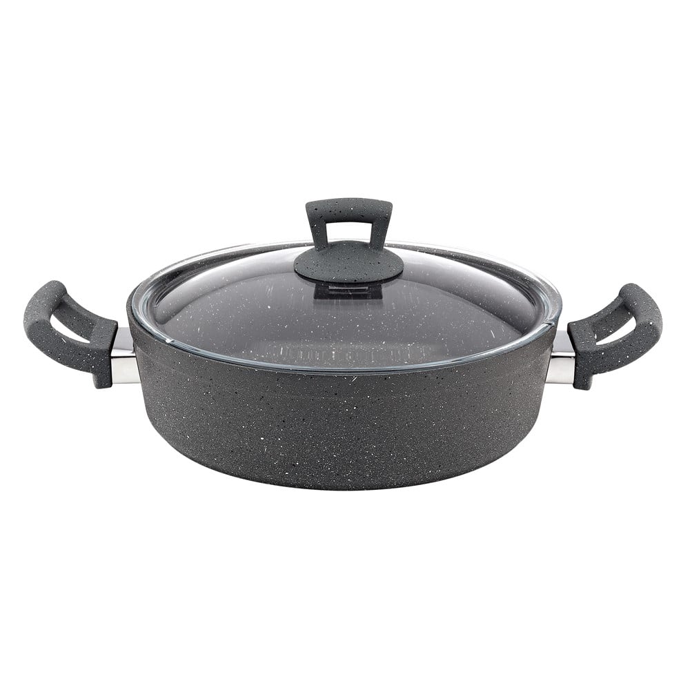 Po vlerësoni:Tenxhere e cekët graniti induksion me kapak Germanitium, alumin, gri, Dia.26x7.5cm / 3.4 Lt