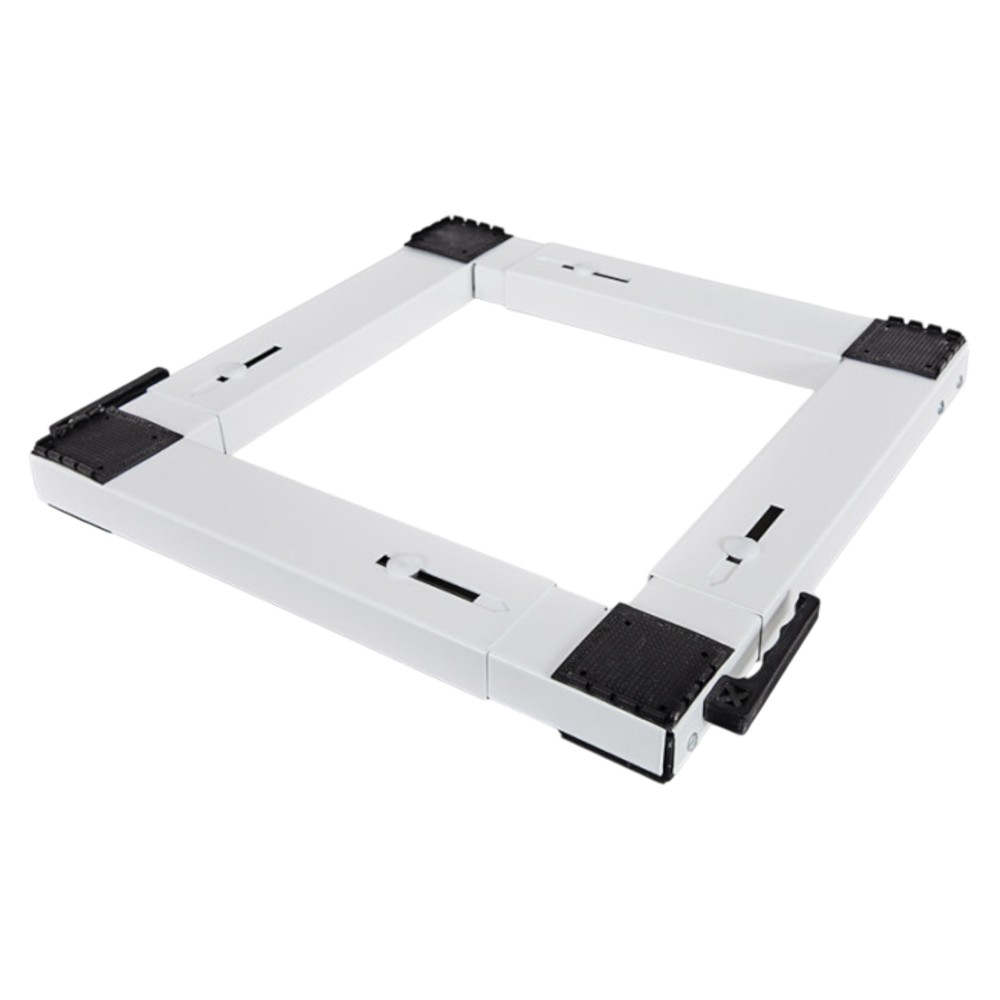 Bazament universal kundër dridhjeve me rrota për pajisje elektroshtëpiake si lavatriçe apo frigoriferë. Përdorni rrotat në fund të bazës për të lëvizur lehtësisht pajisjet tuaja të rënda përpara ose prapa. Sistemi ergonomik i frenave. Strukturë e fortë metalike. Bojë elektrostatike rezistente ndaj përdorimit të rëndë. Kapaciteti i ngarkesës: 250 kg. Struktura e rregullueshme 37x37cm – 62x62cm. Këmbë gome kundër vibrimit.