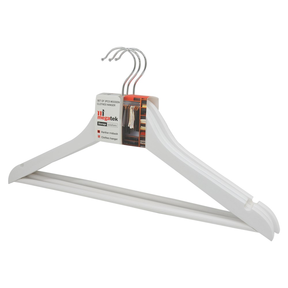 Varëse rrobash kremastar set 3 copë, MEGATEK, druri, e bardhë, 44.5x1.2xH23 cm