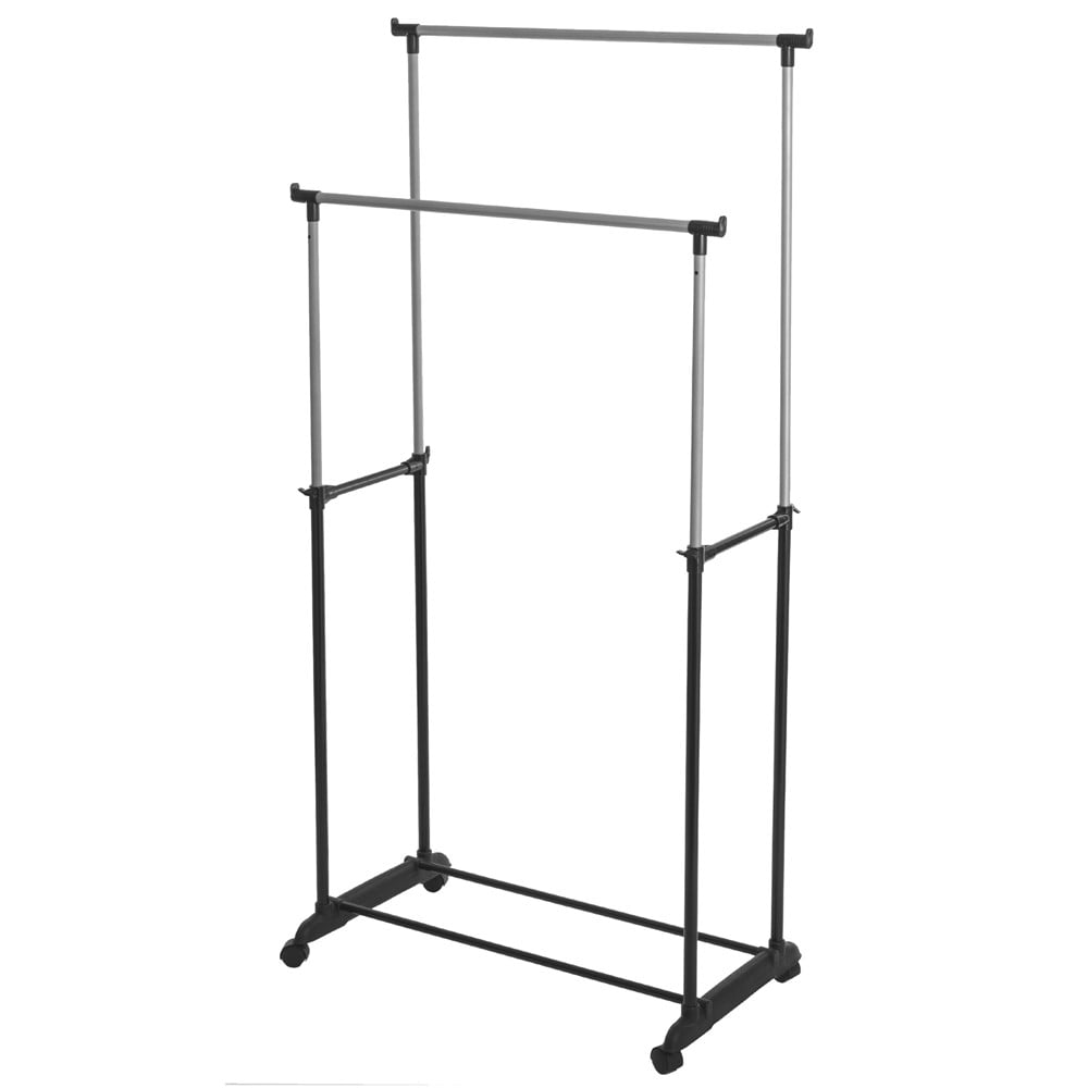Varëse rrobash lëvizëse, me dy shufra, 160 cm. Kujdesuni për organizimin e rrobave tuaja. Kërkohet një varëse e përshtatshme për pallto në mënyrë që ato të mund të varen lirisht pa u rrudhosur. Këmishat, fustanet, fundet dhe sendet e tjera të veshjeve mbajini të pastra, të rregullta dhe elegante me këtë artikull të thjeshtë por të nevojshëm në çdo shtëpi! Një varëse e mirë kursen hapësirë dhe kohë. Nuk zë shumë sipërfaqe dhe veshjet e varura nuk duhet të hekurosen para çdo veshje.