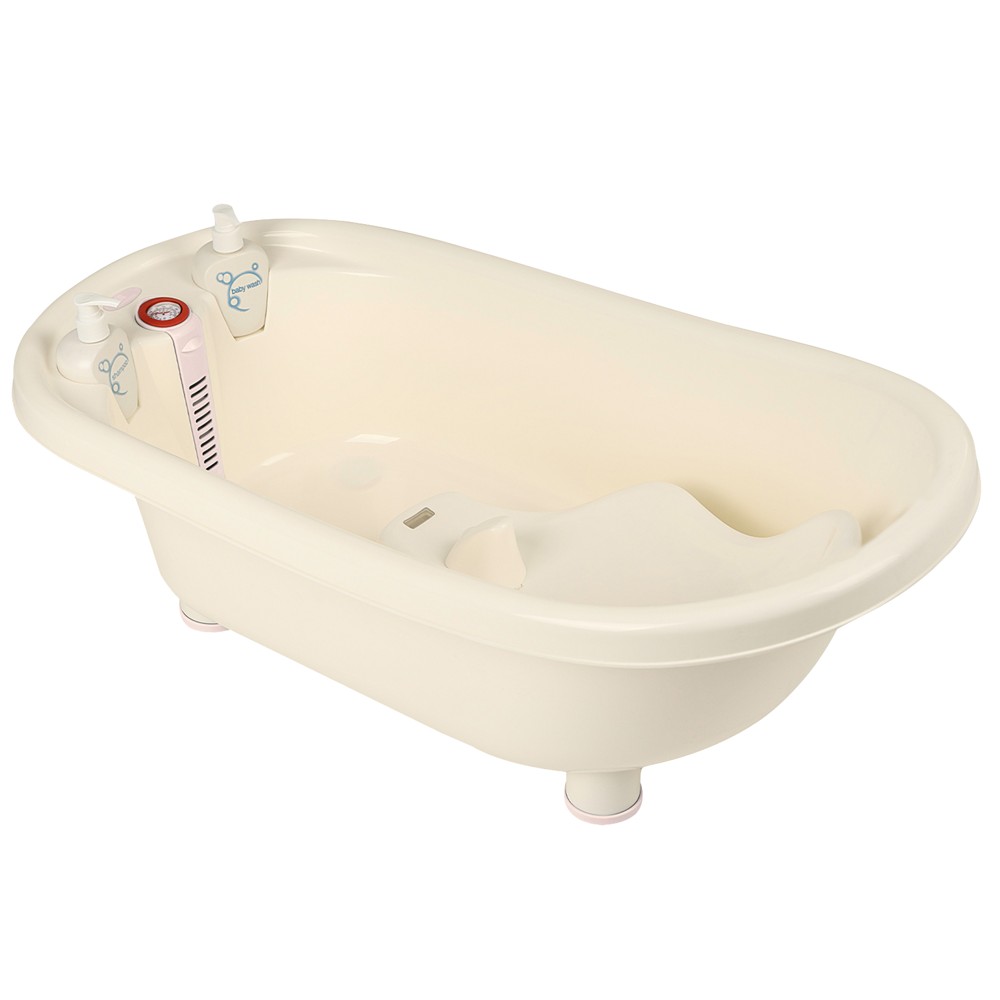 Vaskë për bebe në përmasë 90x45x32 cm, në ngjyrë të bardhë dhe rozë. Forma e saj anatomike kontribuon në komoditetin dhe sigurinë e fëmijës. Ajo ka një mbajtëse për bebet nga 0-6 muaj për t'I mbështetur gjatë larjes. Gjithashtu ka një hapësirë për kullimin e ujit, duke lehtësuar mirëmbajtjen e tij, si dhe një hapësirë të vecantë për të vendosur produktet e higjenës.