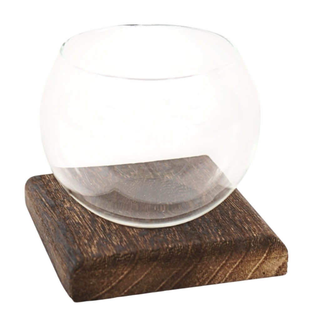 Po vlerësoni:Vazo dekorative, xham/druri, transparente/kafe, 10x10xH9 cm