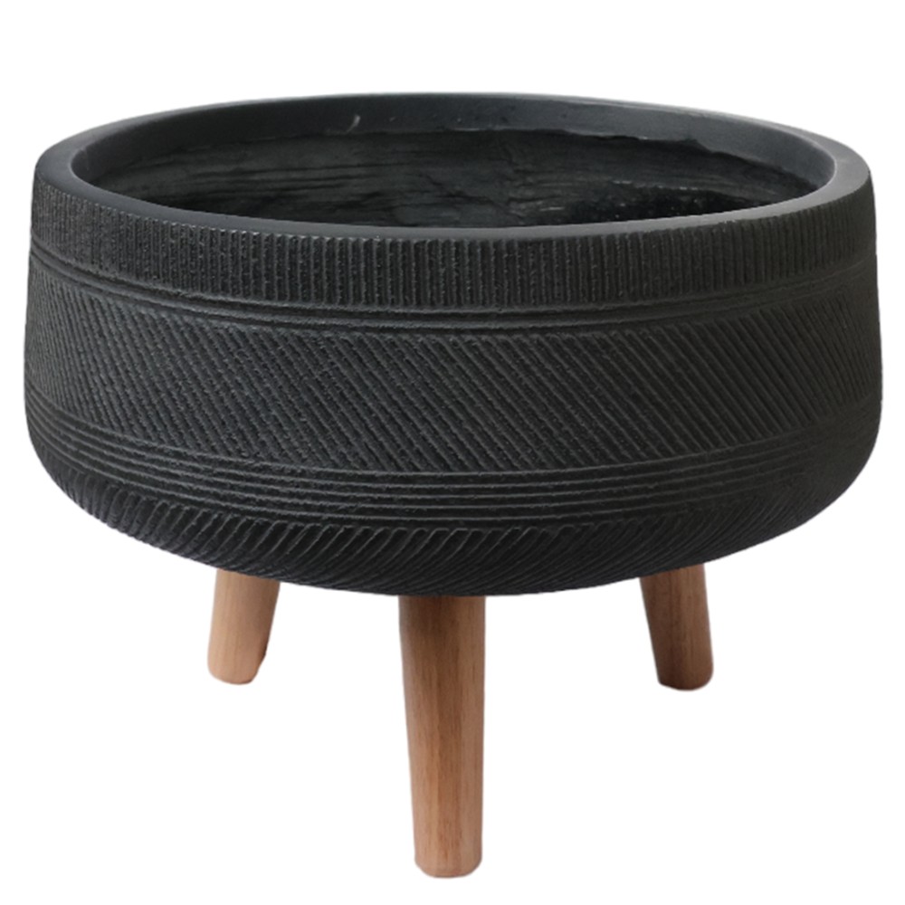 Vazo lulesh, fibër xhami/argjilë, e zezë, 44x44x28 cm