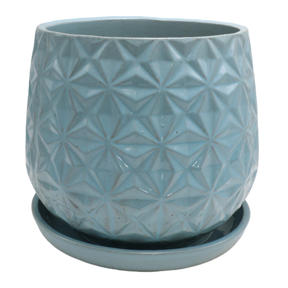 Vazoja e luleve është një pjesë e bukur dhe elegante e dekorit për shtëpinë tuaj. E punuar me kujdes nga qeramika, ajo ka një ngjyrë blu të lehtë e cila i jep një ndjesi të freskët dhe të qetë ambientit. Me dimensionet 27x27x26cm , ajo është i përshtatshme për të vendosur lule të bukura të freskëta në shtëpinë tuaj. Materiali i qeramikës së përdorur për të krijuar këtë vazo janë të cilësisë dhe e bëjnë atë një zgjedhje të qëndrueshme për përdorim të gjatë.