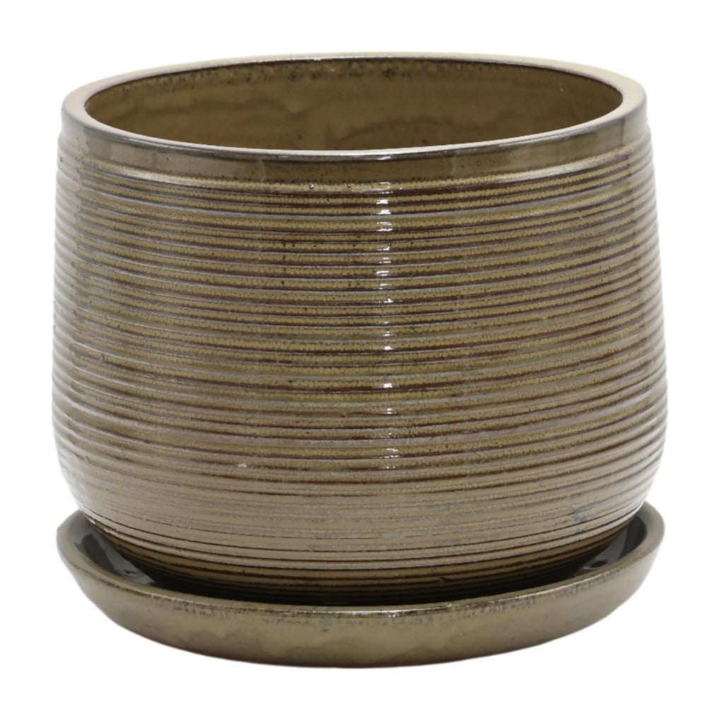 Vazo lulesh, qeramike, kafe, 35.5x35.5x30.5 cm