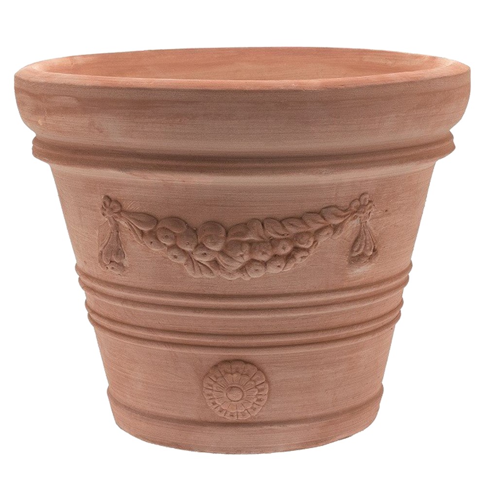 Vazo lulesh, rrethore, Festonato, qeramike, terrakotë, Ø50 xH40 cm
