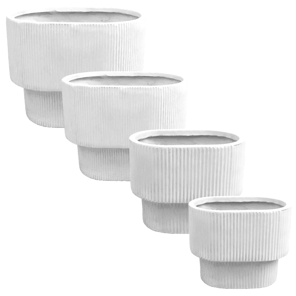 Vazo lulesh, set 4 copë, fibër xhami/argjilë, e bardhë, 34x22x26 cm; 45x29x34 cm; 55x36x43 cm; 67x43x51 cm